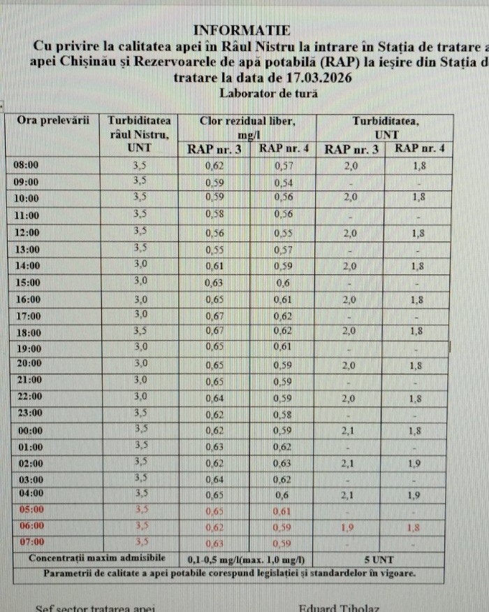 Situația privind calitatea apei din râul Nistru rămâne stabilă, fără niciun pericol pentru alimentarea cu apă a municipiului Chișinău la această oră.